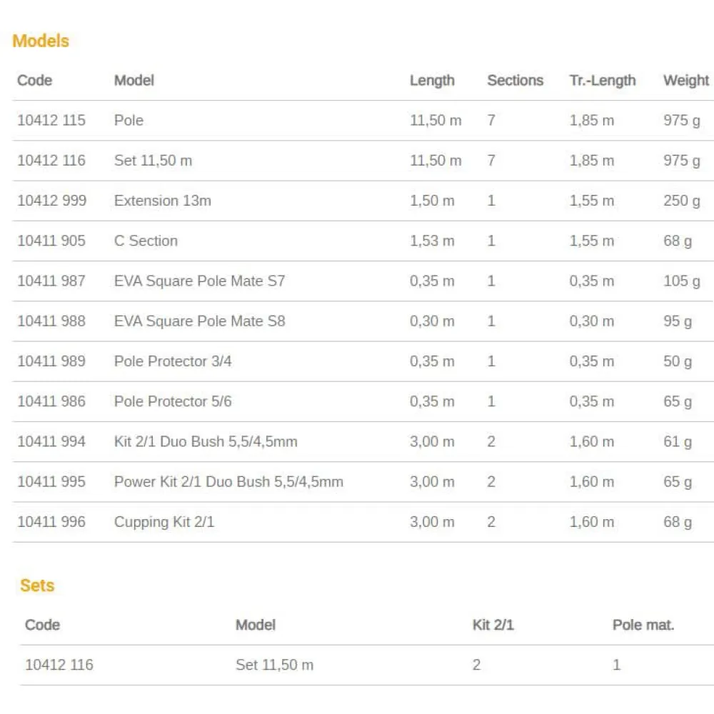 – Optional mini-extensions (Pole Protector) available, allowing the pole to be fished shorter at several different lengths. These also effectively protect the ends of the individual pole sections against unwanted pushing together and deformity.