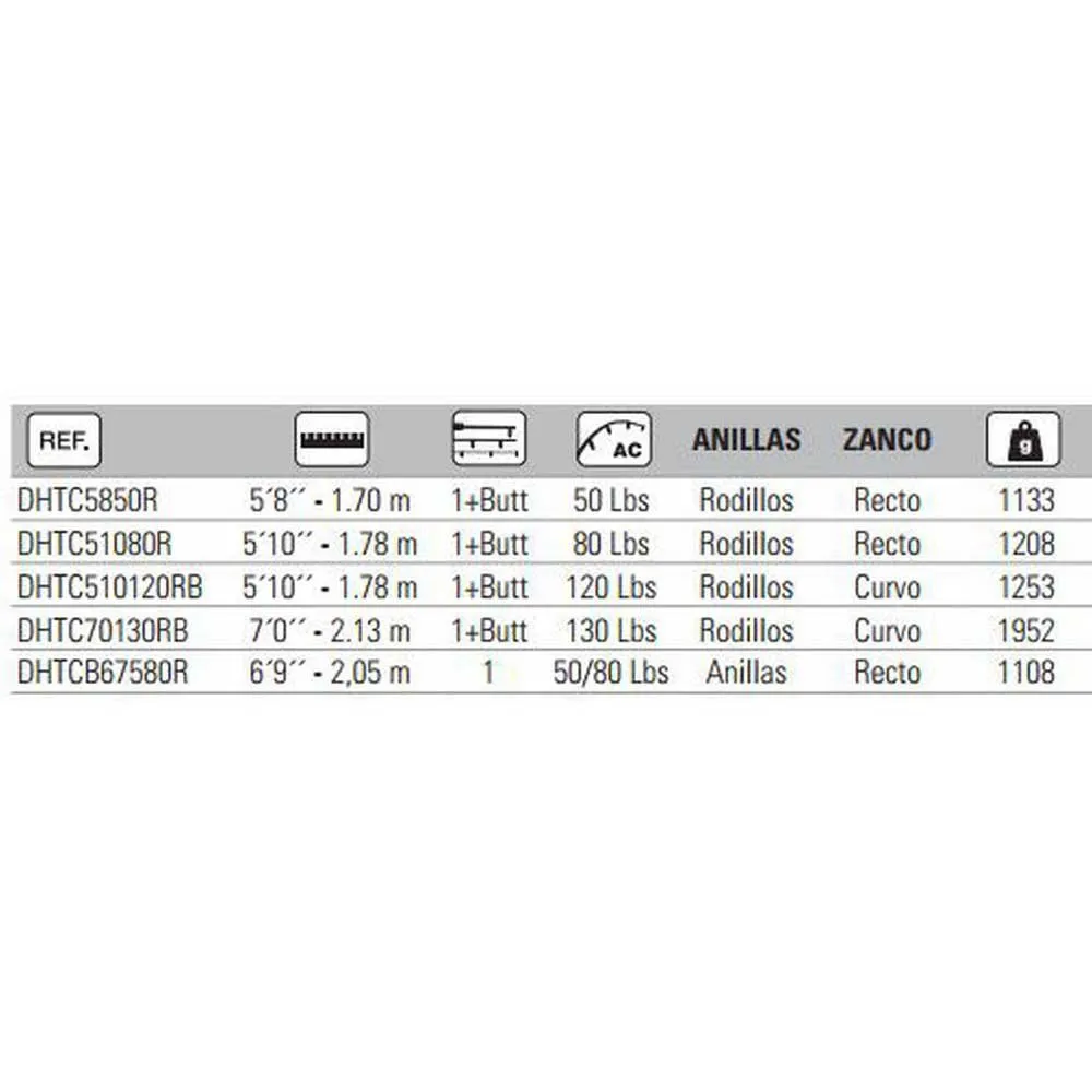 ALPS metal gimbal butts with straight sections (50 and 80 Lbs) or curved sections (120 and 130 Lbs).
