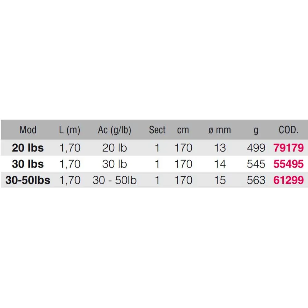 Features: – Carbon – Crossarm – Reinforced metal reel seat – Marinized reinforced rings Specifications: – Mod: 20 lbs – L (m): 1,70 – Ac (g / lb): 20 lb – Sect: 1 – cm: 170 mm: 13 – Weight: 499