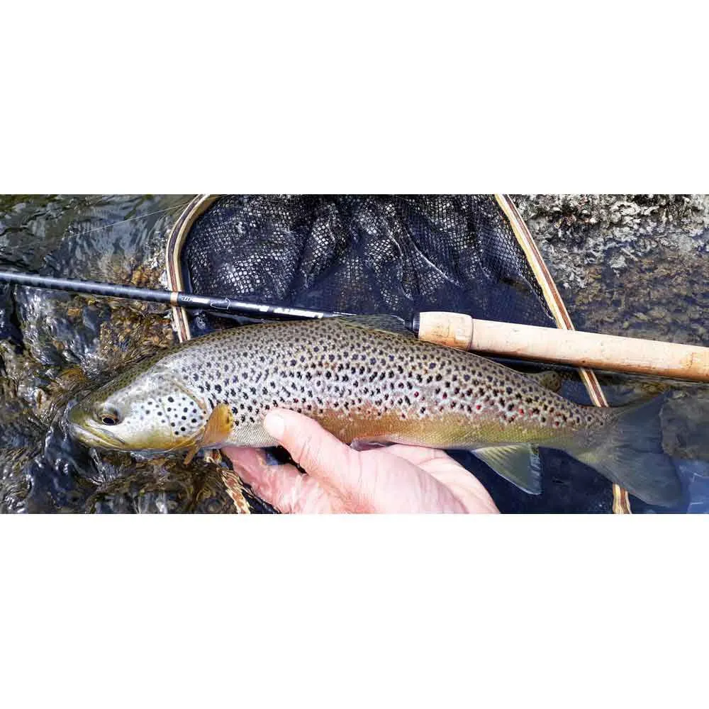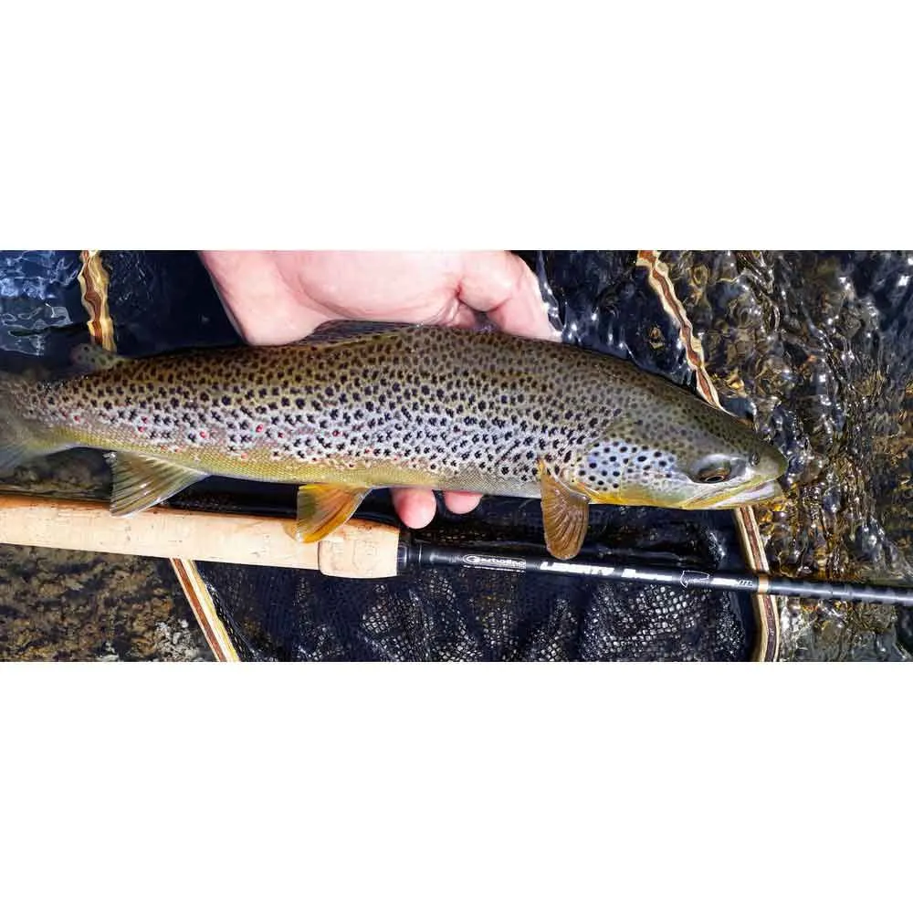 The high modulus carbon blank is noticeable by its small butt diameter, by its softness on the upper part and its large reserve on the lower part. The heel receives a dense braiding in carbon filament. This makes it possible to boost its performance without increasing its weight in the same proportions. New rings equip this rod, which by their assembly combining an ultra-hard metal insert and a high frame. This assembly makes it possible to lighten the rod considerably, which amplifies its resonance and facilitates the transmission of the most discreet bites.