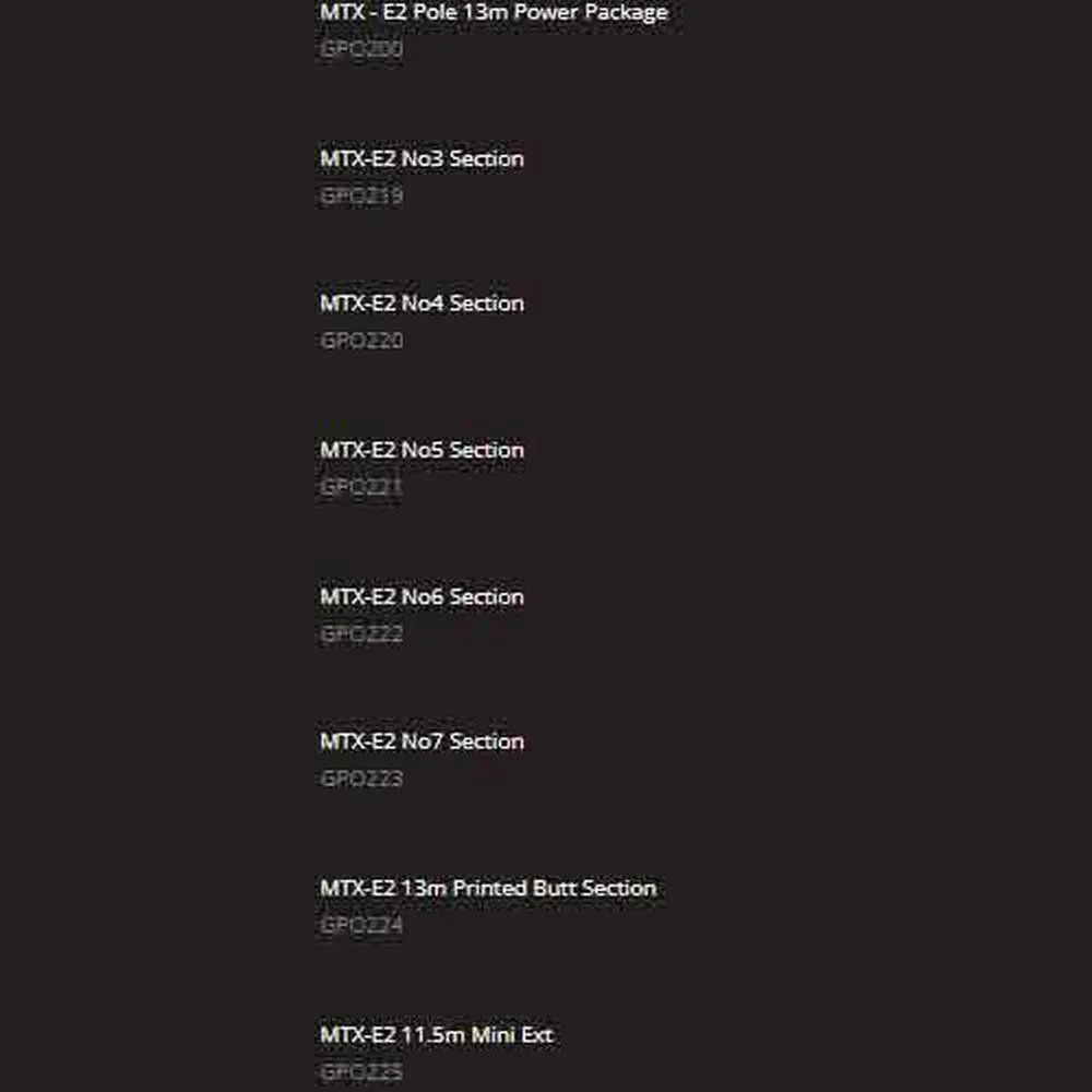 Designed to offer durability whilst retaining balance and rigidity, specifically developed for modern carpadrome fishing. The 13m MTX-E2 Power uses many of the design features from the E3 & E4 Ultra poles, but at a more affordable price point, with emphasis on combating the strains that big weights and large fish put poles under.
