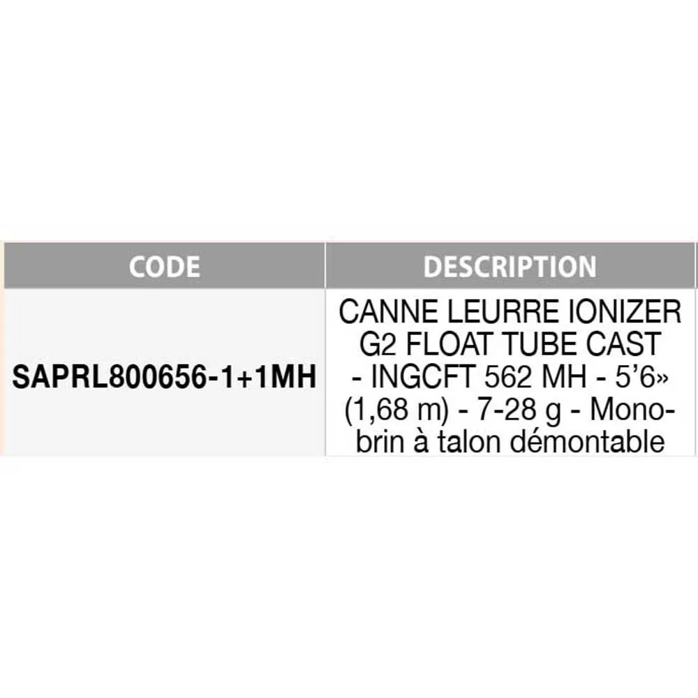 – Reel seat: The Ionizer G2 Float Tube Series casting rods are equipped with ergonomic reel seats that ensure good grip of the reel and guarantee great comfort of use. The grip of the rod is precise and allows you to cast and maneuver without muscle fatigue. Their ´´skeleton´´ design, very light, ensures close contact between your hand and the blank in order to feel the slightest vibrations of your lure or bites.
