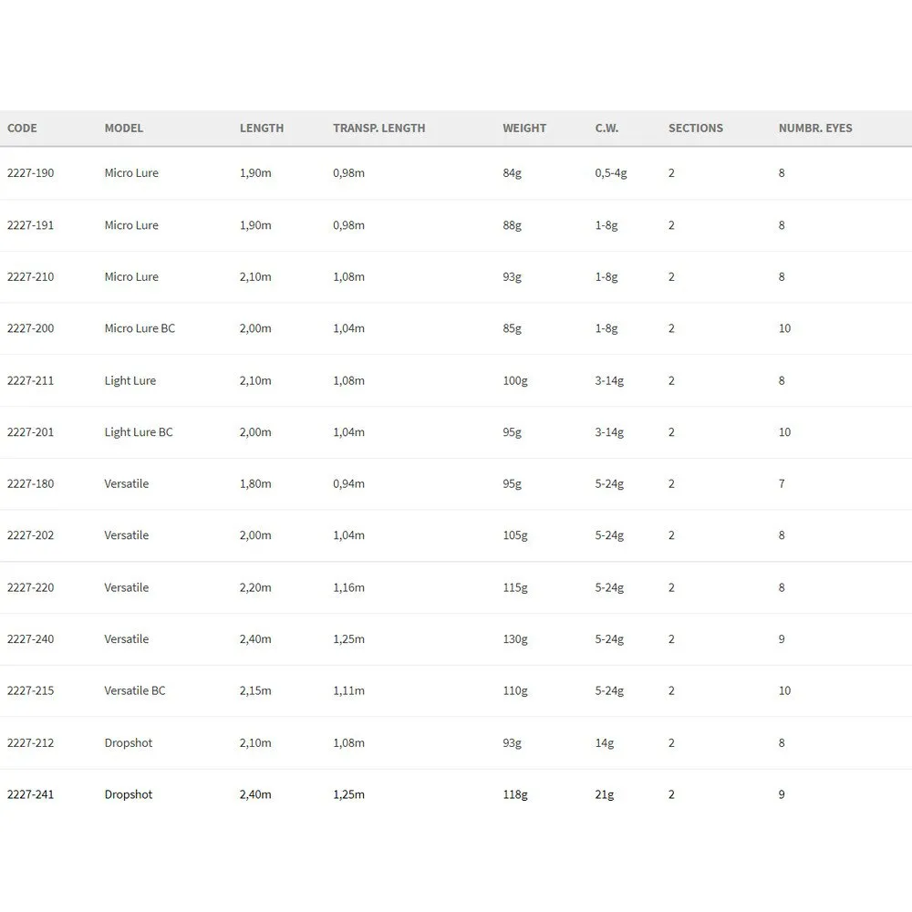 This second generation SKILLZ series is designed using the same specifications as the original series. Overall we have put more concentration into blank strength. You will notice these rods are very light in the hand with a slightly more responsive action. The range now includes more baitcaster rods and a new Light Lure model with a casting weight between Micro Lure and Versatile.