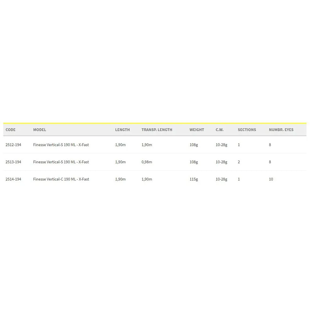 These X-Fast Finesse Vertical rods are light, sensitive, well balanced and powerful. Available in 3 types; 2 types to use in combination with a spinning reel and 1 Specter Vertical to use with a baitcasting reel.