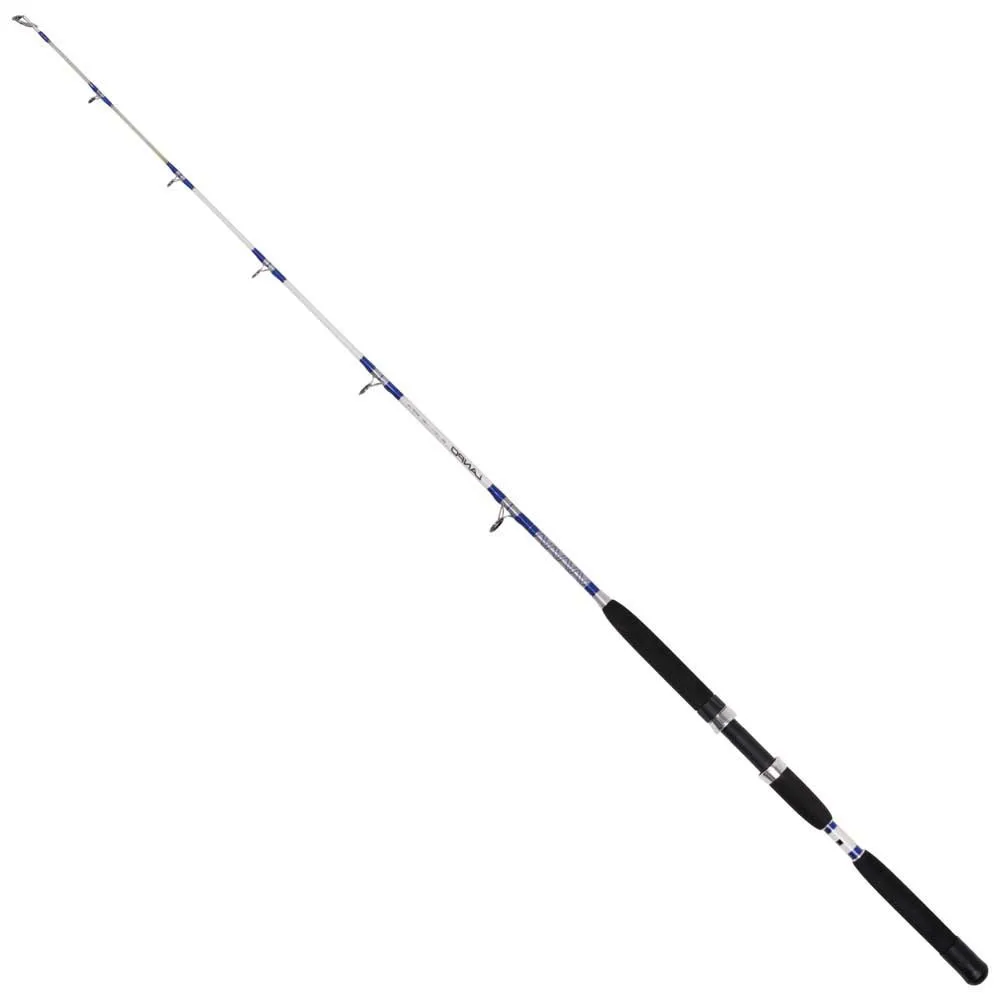Tubular blank with solid fibre tip. SIC double- foot guides. EVA multi-grip. Reinforced screw- lock reel seat. Nylon gimbal butt. Cloth rod bag.