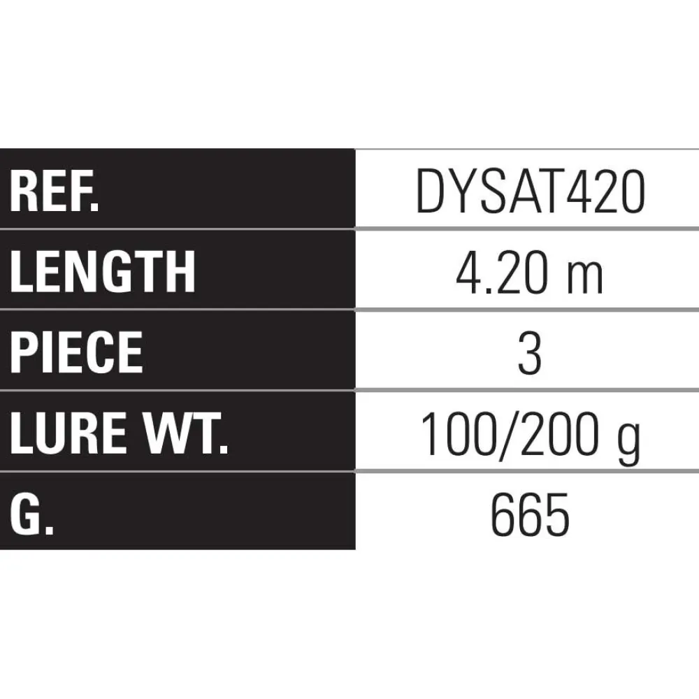 Carbon blank. SIC LC guides. Hybrid tip. Metal butt cap. Reinforced metal ferrules. DPS screw-lock reel seat. Cloth rod bag.